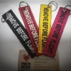Chaveiro Patch – REMOVE BEFONE FLIGHT Bordado com Argola.